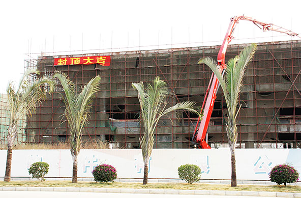 2010年11月29日上午十時(shí)三十八分,伴隨著震耳的爆竹聲,巨臂泵車(chē)將最后一車(chē)砼漿澆注在2#標(biāo)準(zhǔn)廠房樓頂,標(biāo)志著2#、3# 4.7萬(wàn)平米標(biāo)準(zhǔn)廠房全面如期封頂,為重大項(xiàng)目入駐奠定了基礎(chǔ)。