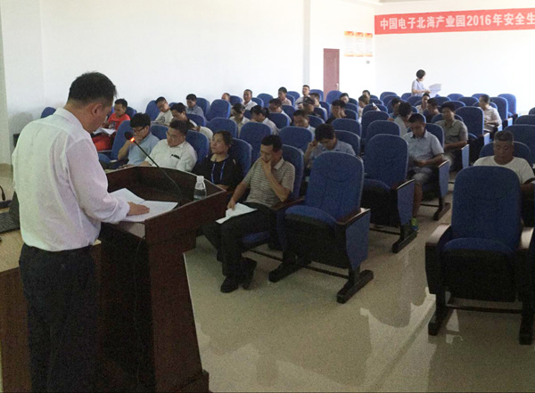 2016年6月3日下午,以“強(qiáng)化安全發(fā)展觀念,提升全民安全素質(zhì)”為主題的中國電子北海產(chǎn)業(yè)園2016年安全生產(chǎn)動(dòng)員大會(huì)在園區(qū)職工之家舉行,21家入園企業(yè)50余人參加了會(huì)議。