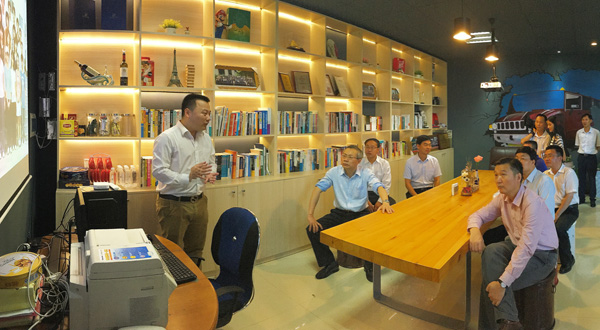 在園區(qū)創(chuàng)新創(chuàng)業(yè)成果展示區(qū),湯濤了解了北部灣孵化器企業(yè)專(zhuān)利技術(shù)、市場(chǎng)拓展、產(chǎn)品推廣等情況,咨詢(xún)了職工待遇、職工再教育、創(chuàng)業(yè)中遇到的困難,鼓勵(lì)青年們多參與創(chuàng)業(yè)技能培訓(xùn)、拓寬創(chuàng)新思維并現(xiàn)場(chǎng)對(duì)創(chuàng)業(yè)企業(yè)負(fù)責(zé)人給予創(chuàng)業(yè)指導(dǎo)。