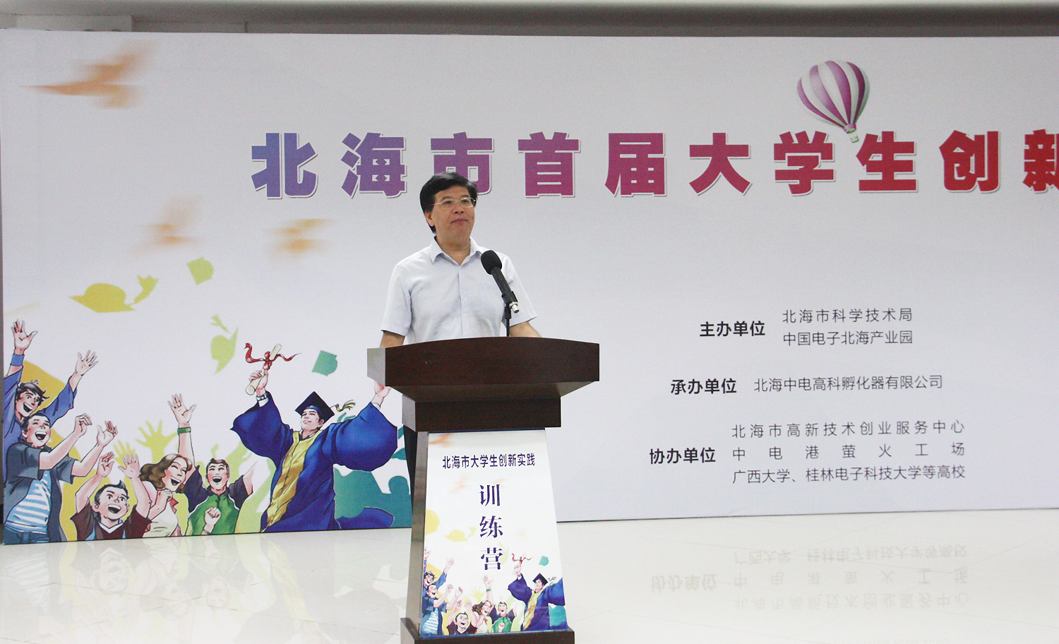 2017年8月15日,北海市首屆大學(xué)生創(chuàng)新實(shí)踐訓(xùn)練營在中國電子北海產(chǎn)業(yè)園舉行開營儀式,北海市常務(wù)副市長陳維出席了開幕式,并宣布訓(xùn)練營開營。