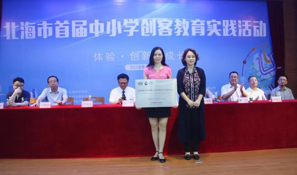 北海市科技局、北海市教育局、中國(guó)電子學(xué)會(huì)、中國(guó)電子北海產(chǎn)業(yè)園主辦的2018年北海市科技活動(dòng)周暨首屆中小學(xué)創(chuàng)客教育實(shí)踐活動(dòng)于5月21日開(kāi)幕,北海市副市長(zhǎng)黃江出席開(kāi)幕式并宣布教育實(shí)踐活動(dòng)啟動(dòng)。